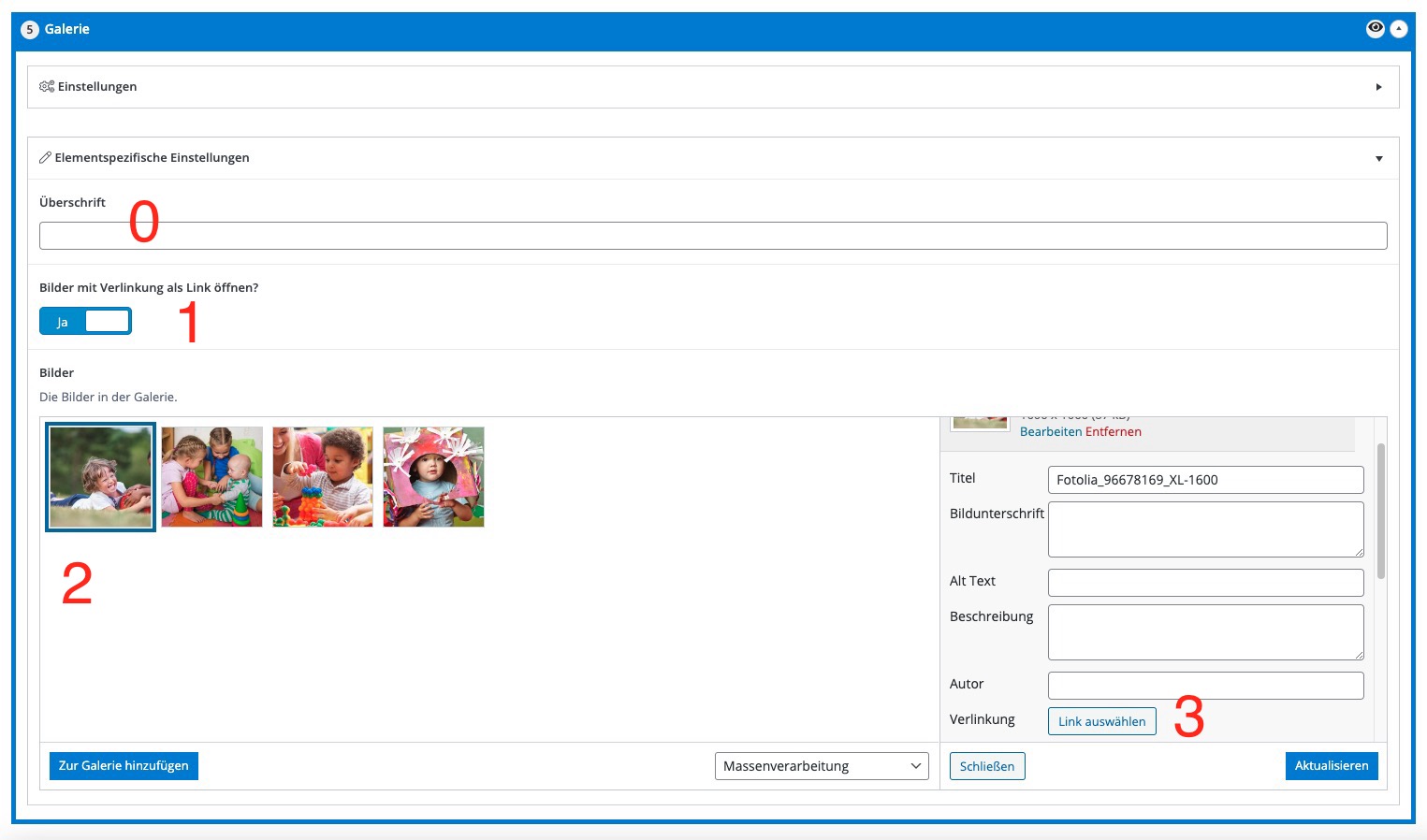 0 – Überschrift: Eine optionale Überschrift, die oberhalb der Galerie angezeigt wird.