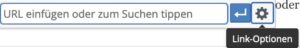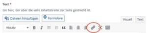 Nun können Sie auf der Zielseite einen Text markieren, und dann das Verketten-Symbol anklicken und die URL mit der Tastenkombination STRG+V einfügen und die Adresse auf dem blauen Return-Button bestätigen.